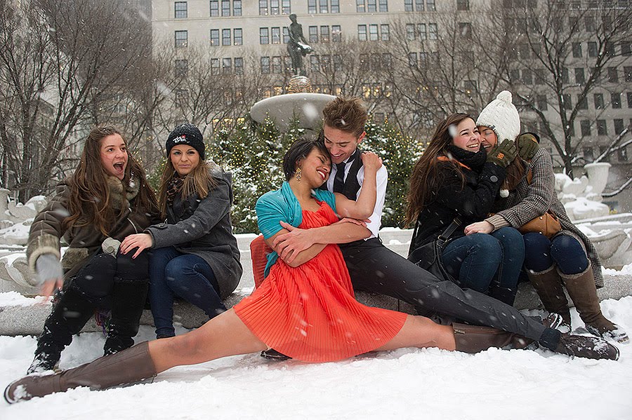 Ashley also happens to be a dancer, currently performing with the NJ Nets. On my way to the studio I saw a few kids making a snowman in the park. So of course I had to combine these elements for Dancers Among Us. Despite freezing toes and slippery snow, Ashley gamely tried to improvise a hip-hop jump while giving the snowman arms. But it really looked like she was trying to stab him in the heart.